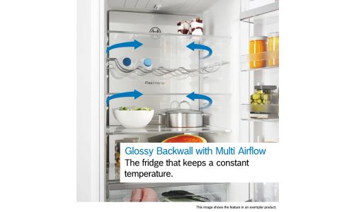 Ongelijke koeling in je koelkast kan een grote impact hebben op de smaak en levensduur van je voedsel. Dankzij de blinkende achterwand met MultiAirflow, worden vocht en temperatuur gelijkmatig verdeeld in de koelingsruimte, van de schappen in de deur tot de achterste hoeken, waardoor je je voedsel langer kan bewaren.