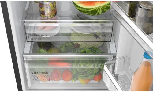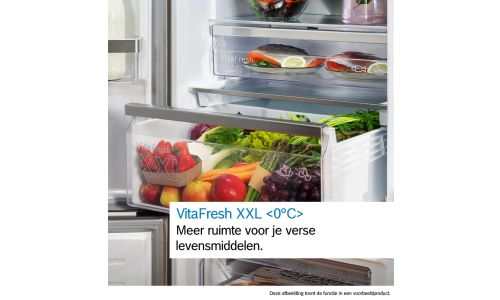 Het ruime VitaFresh XXL <0°C> -systeem biedt de ideale bewaaromgeving voor al je verse levensmiddelen. Het houdt de temperatuur lager voor vlees en vis, en er is een temperatuurgeregelde vershoudlade die je fruit en groenten ook echt vers houdt.