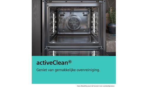 Hang je schoonmaakhandschoenen voorgoed op. Dankzij de activeClean®-functie reinigt jouw oven zichzelf. Verwijder simpelweg losse voedselresten en laat de oven de rest doen. Met een druk op de knop wordt vuil van het bakken, braden en grillen bij hoge temperatuur tot as verbrand. Gebruik een vochtige doek om resterende as en eventuele andere resten weg te vegen en de oven is weer schoon.