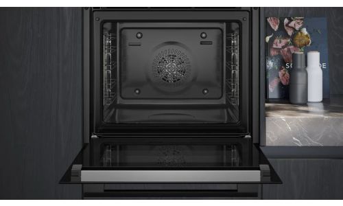 Perfect voor tussentijdse reiniging: dankzij humidClean is het reinigen van uw oven nu eenvoudiger dan ooit. Het volstaat om 400 ml water te mengen met een druppel afwasmiddel en de oplossing in het midden van de vloer van het volledig gekoelde kookcompartiment te gieten.. Zet je oven op vloerwarmte op 80°C en laat de oplossing 4 minuten verdampen. Nadat de oven is afgekoeld, kun je vuil eenvoudig verwijderen met een absorberende spons of zachte borstel.