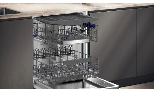 De Vario-besteklade biedt een extra laadruimte. Dankzij het speciale ontwerp is er niet alleen ruimte voor bestek, maar ook voor pollepels, slabestek en klein serviesgoed zoals espressokopjes. En in de onderste korf is geen bestekmand meer nodig zodat daar nu ruimte is voor vaatwerk van 14 personen.
