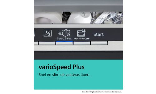 Was en droog de vaat tot drie keer sneller, maar met dezelfde uitstekende resultaten. Met varioSpeed Plus kunt u de spoelturbo op elk moment inschakelen, ook als de spoelcyclus actief is. Het beste van alles is dat u varioSpeed Plus kunt activeren en bedienen met de Home Connect-app. Slim toch?