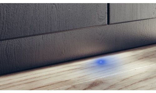 infoLight projecteert een blauwe stip op de keukenvloer zolang het afwasprogramma bezig is.