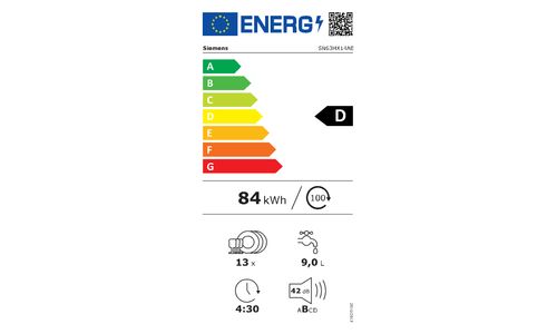 | Energieverbruik in eco-programma per 100 cycli | 84 kWh |
