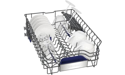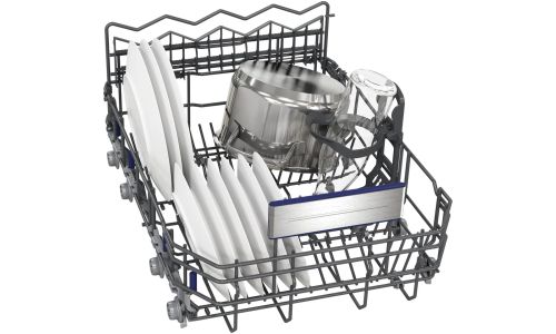 Niet zeker of al je vaat wel in een Slimline afwasmachine past? Je kan onze flexibele varioFlex Pro korven en varioLade Pro met de donkerblauwe touchpoints herinrichten om alle ruimte optimaal te benutten.Pollelepels, tangen en kleine kommetjes passen in de besteklade dankzij de 2 sets neerklapbare houders, zodat je onderin meer plek overhoudt voor servies en potten. De 7 rijen neerklapbare houders, 2 kopjesrekken, 2 antislipelementen en ondersteuning voor glazen zullen je versteld doen staan van wat er allemaal in je vaatwasser past.