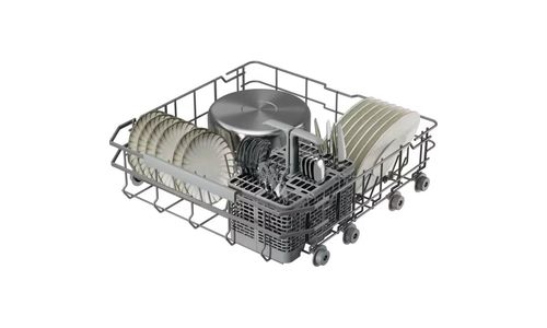 De vernieuwde EasyFlex-korven glijden soepel en hebben antislip rubberen noppen om glaswerk en delicate spullen te beschermen. Twee rijen zijn opklapbaar voor grote of ongewone items. De bestekmand is deelbaar voor extra flexibiliteit.