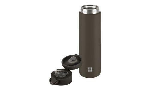 De ZWILLING THERMO PLUS One Touch Flask in elegant chocoladegrijs is je dagelijkse metgezel – op kantoor, onderweg of tijdens een ontspannen wandeling door de stad. Hij biedt ruimte voor 500 ml van je favoriete drankje en houdt het tot 6 uur warm of tot 7 uur heerlijk koel – precies zoals jij het lekker vindt. De lip op de dop houdt deze veilig gesloten en maakt eenvoudig openen met één hand mogelijk, ideaal voor onderweg. De antislipbodem zorgt voor stil en stabiel neerzetten. Licht van gewicht, lekvrij en vaatwasmachinebestendig: deze thermos is gemaakt voor alles wat je dag brengt. Ontworpen door Matteo Thun en Antonio Rodriguez staat hij voor Italiaans design op zijn meest functioneel. Geniet van koffie precies zoals jij hem graag drinkt – waar je ook bent.