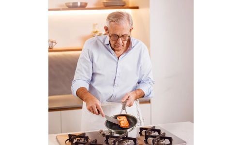 Makkelijk in gebruik en extra veelzijdig – van delicate bereidingen tot dichtschroeien op hoge temperatuur, van fornuis tot oven (220°C).