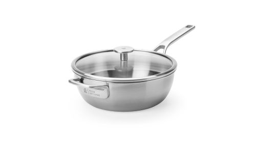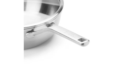 Maestro 3-Ply, ontwikkeld met driesterrenchef Peter Goossens, combineert kracht, finesse en vakmanschap. Het drielaagstaal (3-Ply) met aluminium kern en RVS buitenlagen zorgt voor perfecte warmteverdeling, maximale controle en behoud van smaken. Krasbestendig, duurzaam en geschikt voor intensief gebruik, met een elegant design. Ideaal voor wie elk gerecht naar een hoger niveau wil tillen.