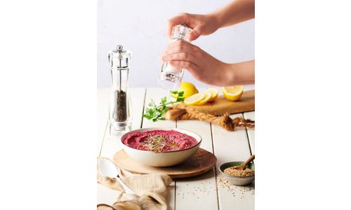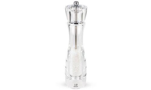 De combinatie van acryl en metaal is een inspiratie voor de moderniteit. De zoutmolen Vittel is hiervan het bewijs: dankzij zijn totale transparantie is het mogelijk om snel te zien welke specerij hij bevat. De stalen accenten verbeteren zijn silhouet. Met de knop bovenop de molen kunt u de maalgraad instellen: door hem losser te draaien verkrijgt u een dikke maalgraad. Deze zoutmolen zal makkelijk zijn plaats vinden op tafel om uw maaltijden te begeleiden.
